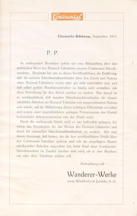 Der Dezimal-Tabulator der Continental-Schreibmaschine