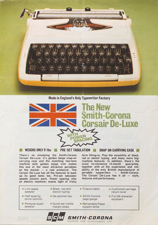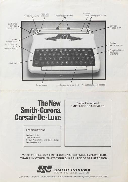 Prospekt für Schreibmaschine Smith-Corona Corsair De Luxe