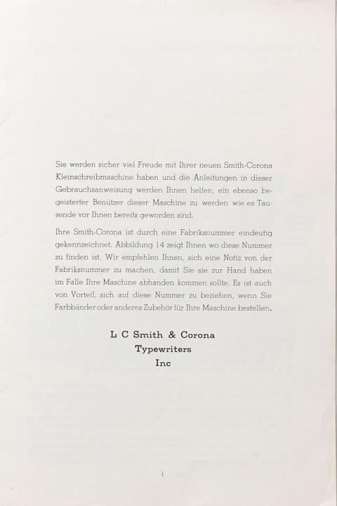 Bedienungsanleitung für Schreibmaschine Smith-Corona Wir Gratulieren! Sie sind nun Besitzer der besten Kleinschreibmaschine der Welt Nr. PS513-15 German 2M 7-49