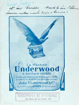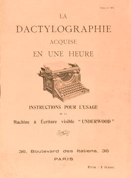 Prospekt in französischer Sprache für Schreibmaschine Underwood Deckblatt beschrieben