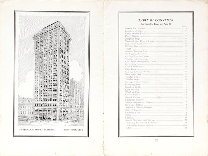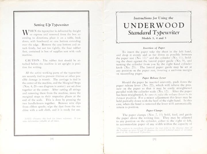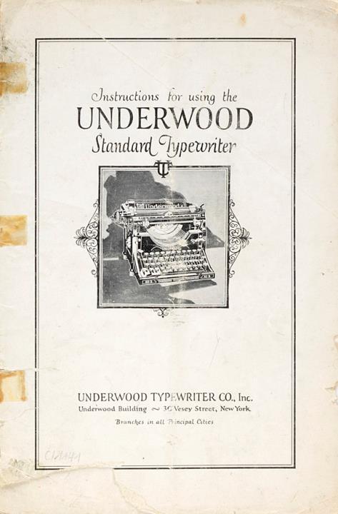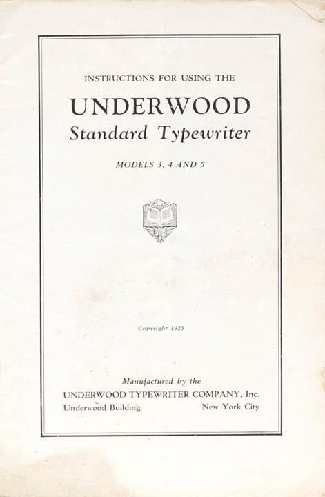 Bedienungsanleitung für Schreibmaschine Underwood 3, 4 und 5 Nr. R-120-5-27-100M, zwei Exemplare (eines fotokopiert, gebunden)