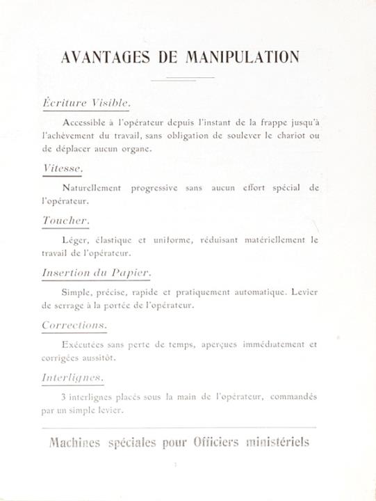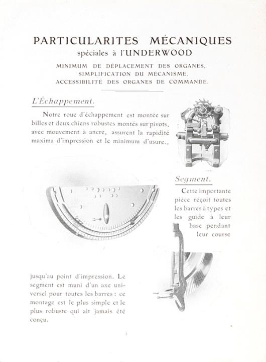 Prospekt in französischer Sprache für Schreibmaschine Underwood Deckblatt beschrieben