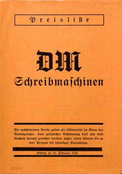 Preisliste und Ratentabelle für Schreibmaschine DM; gültig ab 25. Februar 1939 Die Schreibmaschine des deutschen Mechanikers Nr. DM 18/BA 31/1