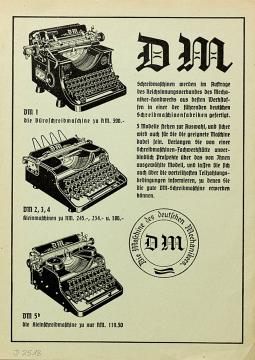 Faltprospekt für Schreibmaschine DM Die Schreibmaschine des deutschen Mechanikers Nr. DM 12/BA4/1