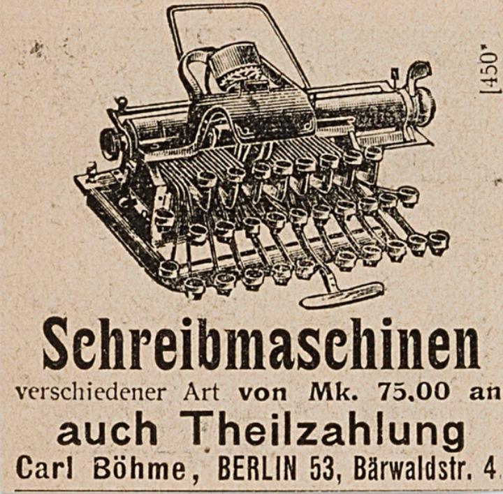Werbeanzeige für Schreibmaschine Blickensderfer monochrom