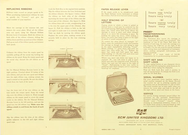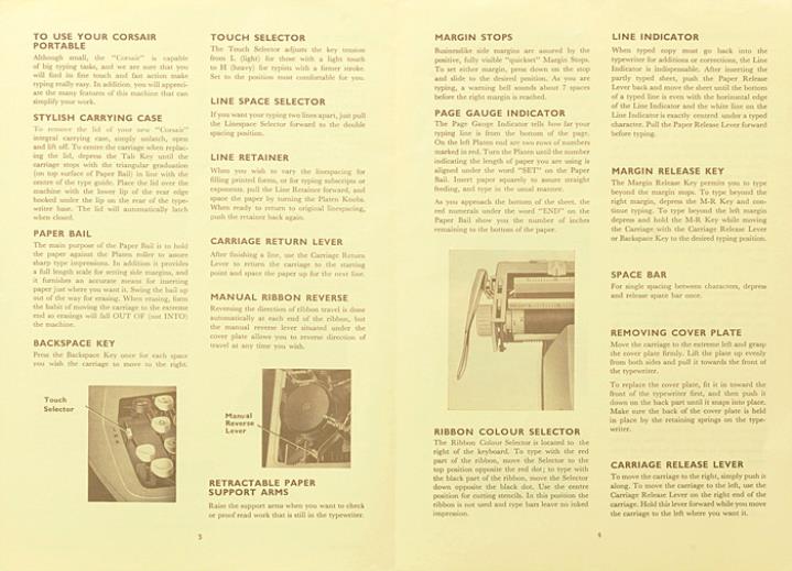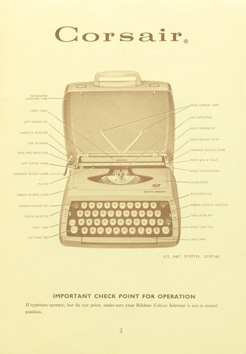 Bedienungsanleitung für Schreibmaschine Smith-Corona Corsair Precision in Miniature Nr. P485004G 5000 -/1/68
