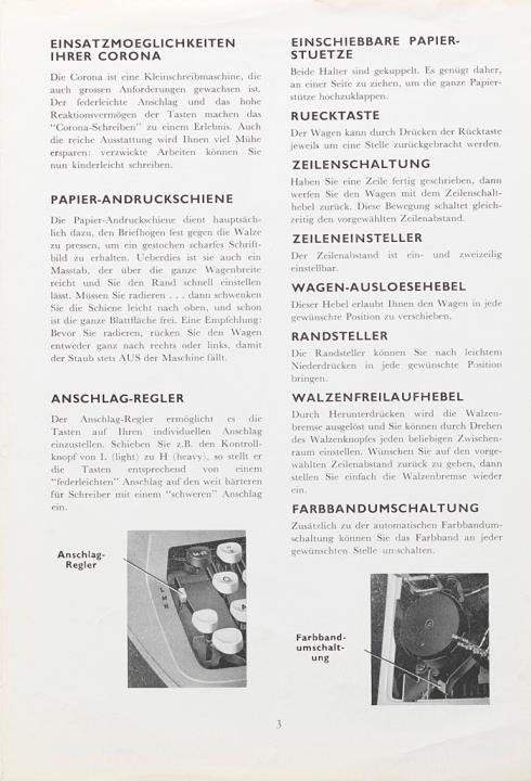 Bedienungsanleitung für Schreibmaschine SCM Corona Praezision in Miniatur Nr. 485009