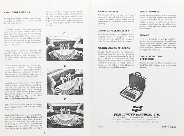 Bedienungsanleitung für Schreibmaschine SCM Viceroy De-Luxe Worlds-famous Portable Typewriter Nr. 485055