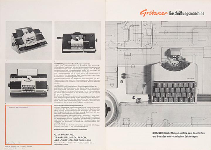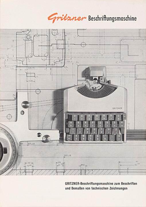Faltprospekt für Beschriftungsmaschine Gritzner zum Beschriften und Bemaßen von technischen Zeichnungen Nr. 25090 Wi. 0769