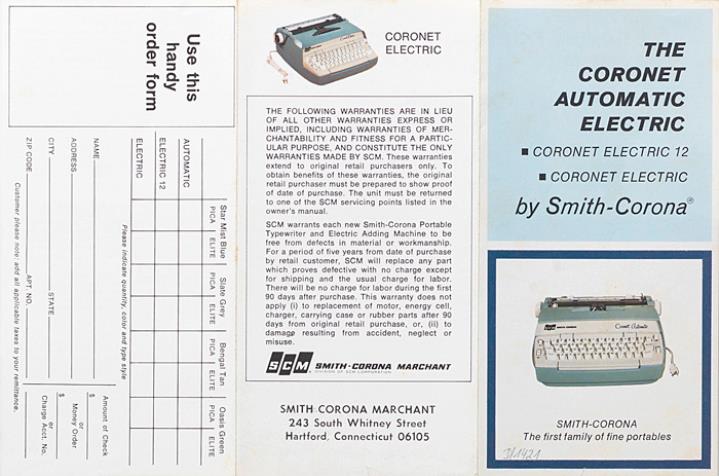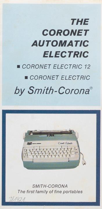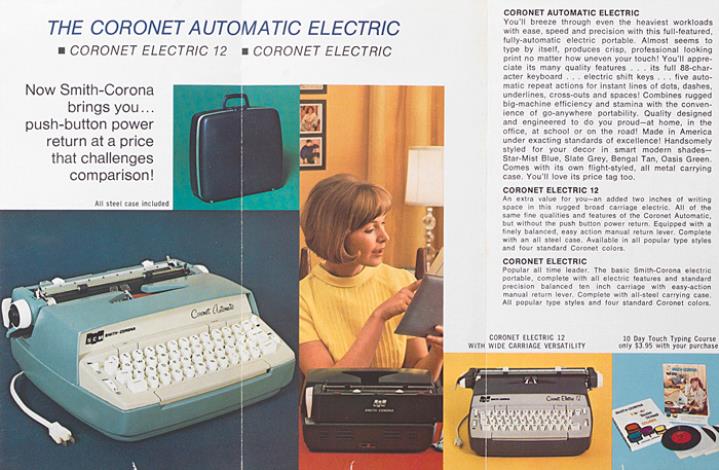Faltprospekt für elektrische Schreibmaschine Smith-Corona Coronet Electric 12 und Coronet Electric