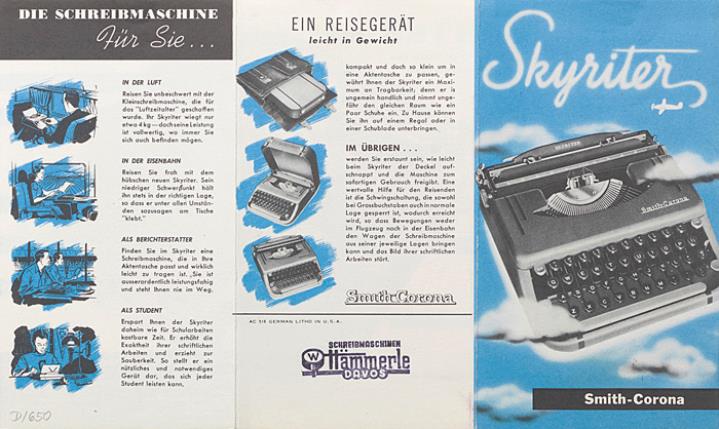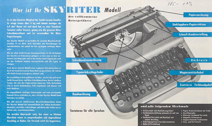 Faltprospekt für Schreibmaschine Smith-Corona Skyriter Nr. AC 516 German