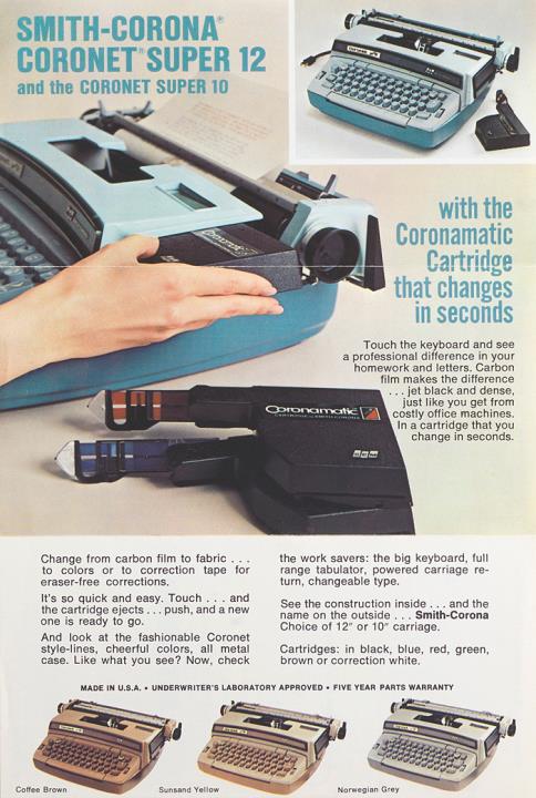 Faltprospekt für elektrische Schreibmaschine Smith-Corona Coronet Super 12, Super 10 Nr. CCR-2-3004