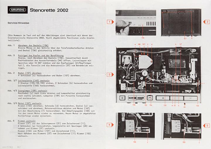 Reparaturanleitung für Diktiergerät Grundig Stenorette 2002 Nr. 05193-906.01/05193-942.01