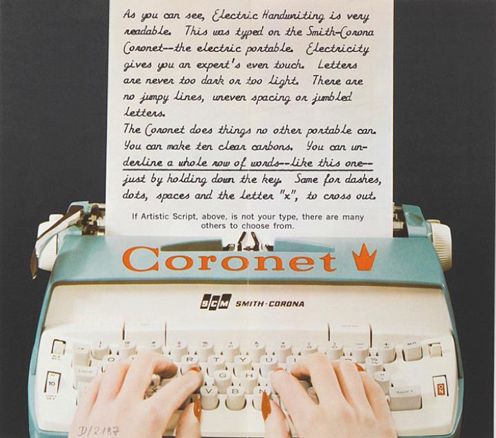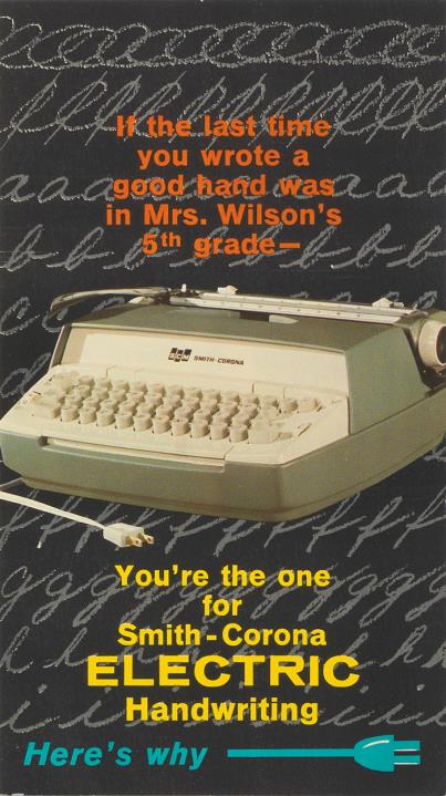 Faltprospekt für Schreibmaschine Smith-Corona Electric If the last time your wrote was in Mrs. Wilson's 5th grade - You're the one for Smith-Corona Electric Handwriting Nr. PT 5006-1
