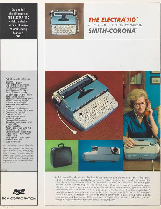 Prospekt für elektrische Schreibmaschine Smith-Corona Electra 110 Nr. PT 5508