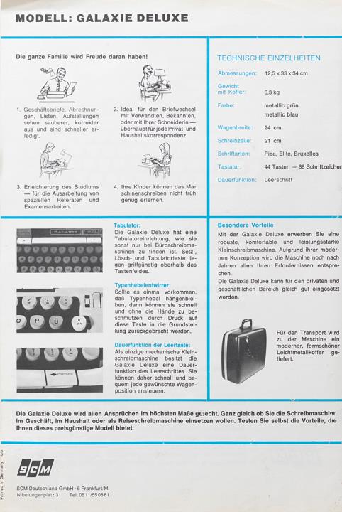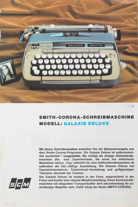 Prospekt für Schreibmaschine Smith-Corona Galaxie Deluxe Nr. 1075 Datum handschriftlich vermerkt