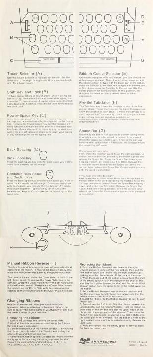 Bedienungsanleitung für Schreibmaschine Smith-Corona Nr. 485071