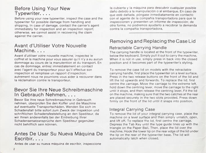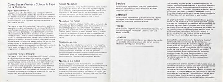 Bedienungsanleitung viersprachig für Schreibmaschine Smith-Corona Nr. 485070