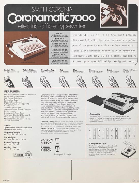 Prospekt für elektrische Schreibmaschine Smith-Corona Coronamatic 7000 Nr. INT-7000