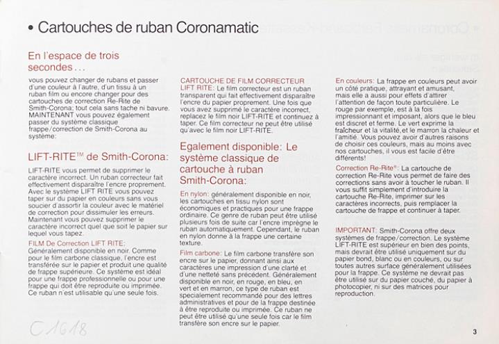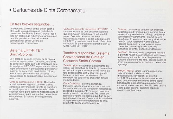 Owner's Manual Smith-Corona Coronamatic Typewriters