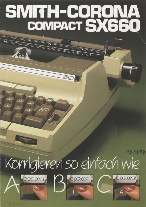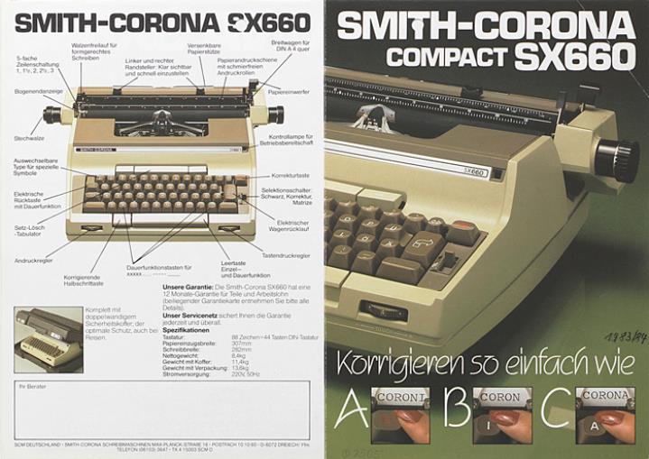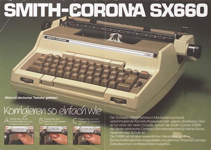 Faltprospekt für elektrische Schreibmaschine Smith-Corona SX660 Korrigieren so einfach wie ABC Datum handschriftlich vermerkt
