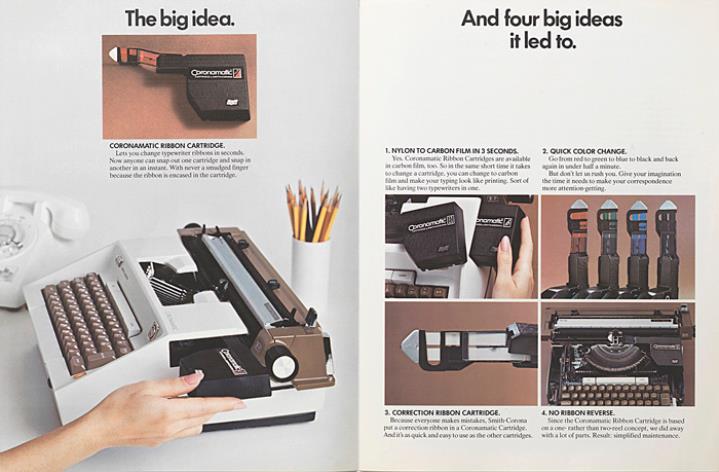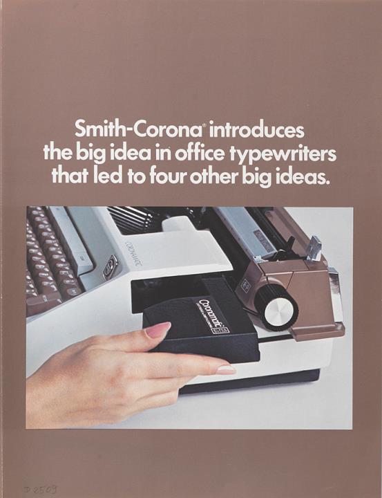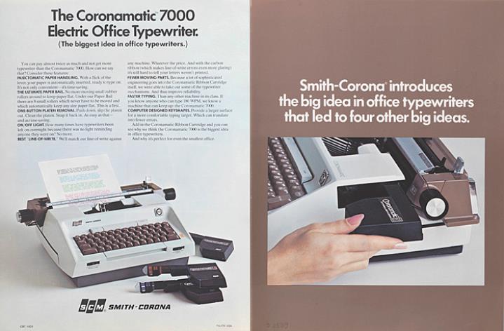 Faltprospekt für elektrische Schreibmaschine Smith-Corona Coronamatic 7000 Smith-Corona introduces the big idea in office typewriters that led to four other big ideas Nr. CPE-0735