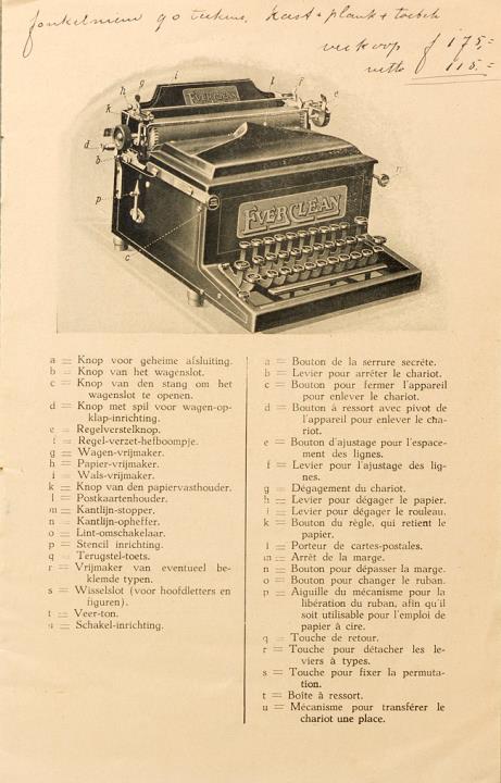 Next to literature on the history of technology, of the typewriter and the office, the Archive holds patent letters, textbooks and instruction manuals as well as historical postcards, letters, photographs and various kinds of advertising (leaflets and brochures, advertising stamps, newspaper ads, posters and signs, promotional gifts).