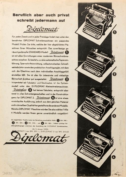 Prospekt für Schreibmaschine Diplomat Fotokopie