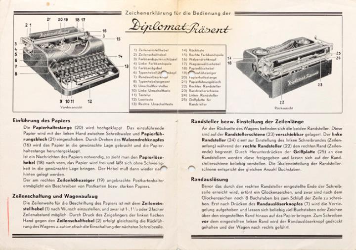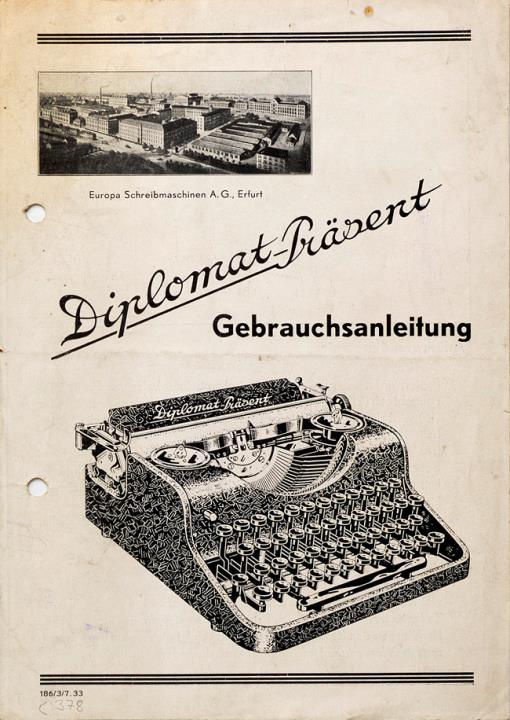 Bedienungsanleitung für Schreibmaschine Diplomat-Präsent Nr. 186/3/7.33