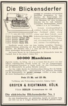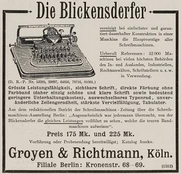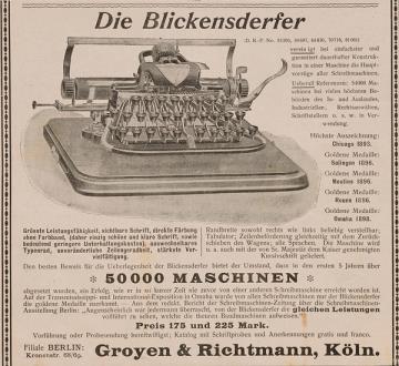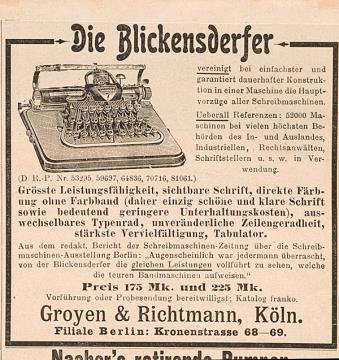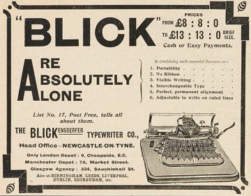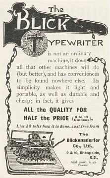 Werbeanzeige für Schreibmaschine Blickensderfer monochrom
