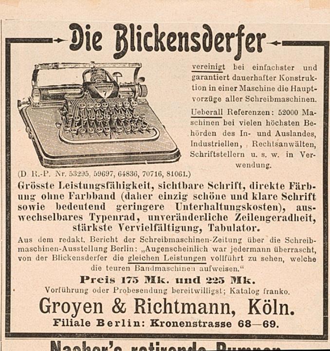 Werbeanzeige für Schreibmaschine Blickensderfer monochrom, zwei Exemplare
