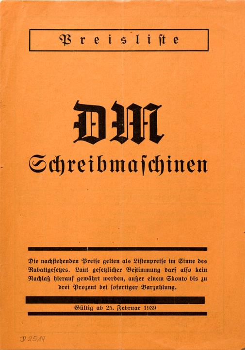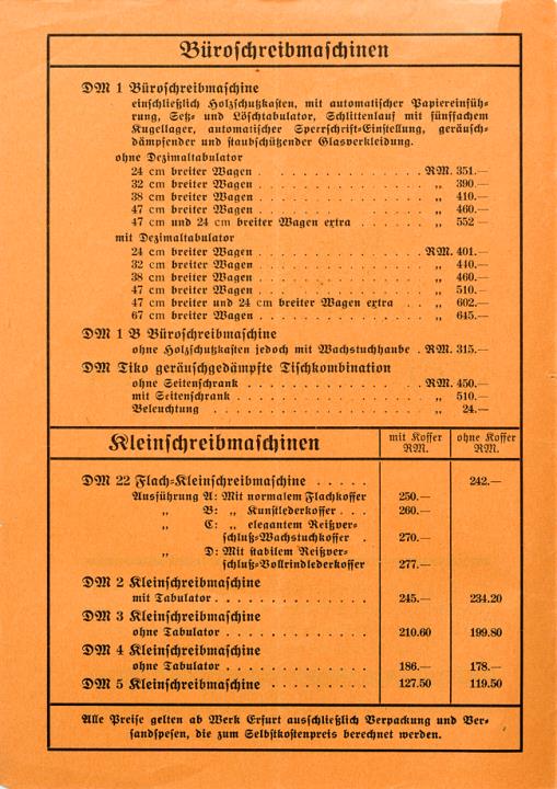 Preisliste DM Schreibmaschinen