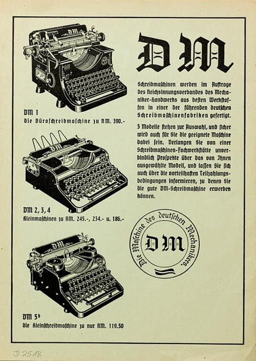 Next to literature on the history of technology, of the typewriter and the office, the Archive holds patent letters, textbooks and instruction manuals as well as historical postcards, letters, photographs and various kinds of advertising (leaflets and brochures, advertising stamps, newspaper ads, posters and signs, promotional gifts).