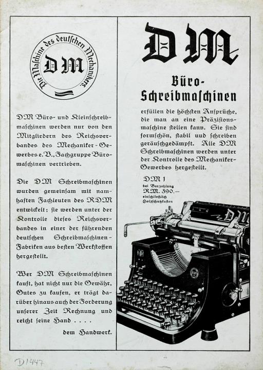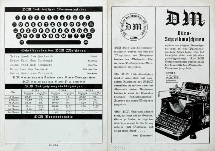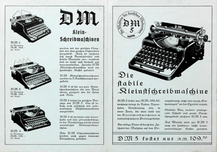 Faltprospekt für Schreibmaschine DM Die Maschine des deutschen Mechanikers Nr. DM 12/B4