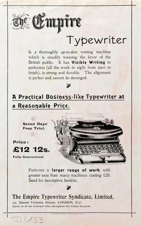 Prospekt für Schreibmaschine Empire
