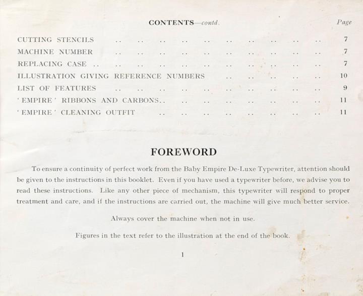 Instructions for Operating and Maintaining the baby Empire de luxe Portable Typewriter