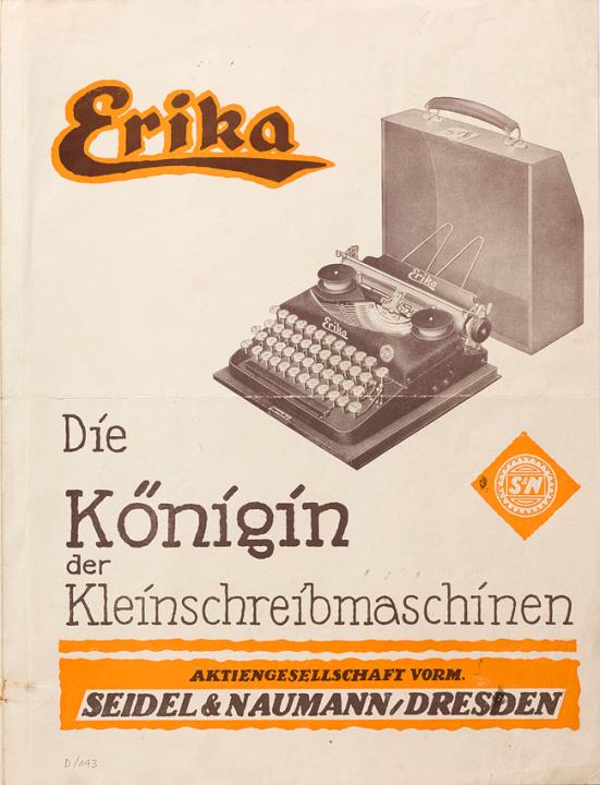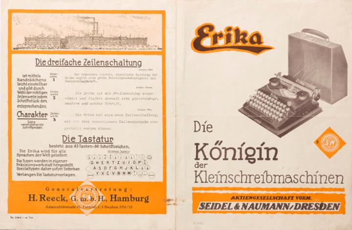 Faltprospekt für Schreibmaschine Erika Re 1046d r ya Tex
