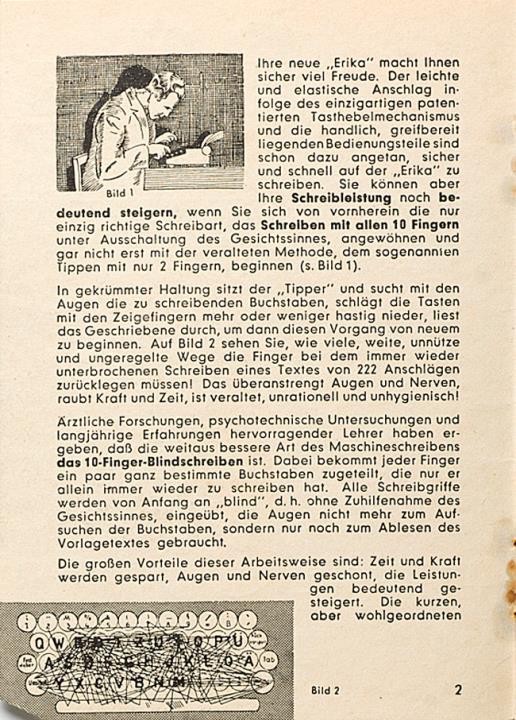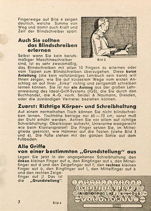 Kurze Anleitung zur Erlernung des Blindschreibens auf der Erika-Schreibmaschine Nr. Sv 5483 o pf YE