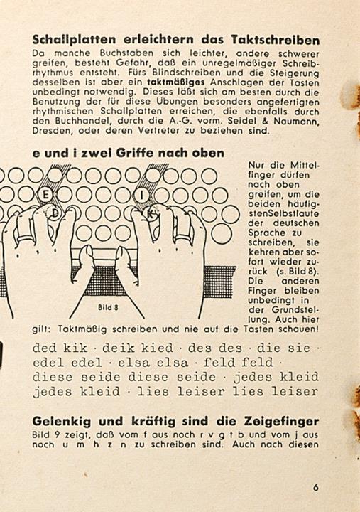Reiseschreibmaschine, Tragbare Schreibmaschine, Blindschreibmethode, Zehnfingersystem, Typenhebel
