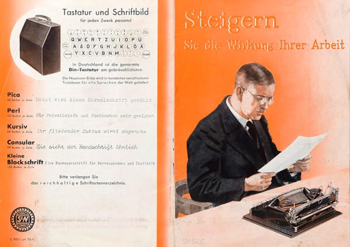 Next to literature on the history of technology, of the typewriter and the office, the Archive holds patent letters, textbooks and instruction manuals as well as historical postcards, letters, photographs and various kinds of advertising (leaflets and brochures, advertising stamps, newspaper ads, posters and signs, promotional gifts).