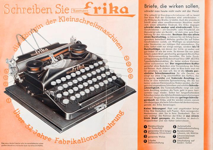 Faltprospekt für Schreibmaschine Erika Nr. S 7011 r.pt.TG.Y.