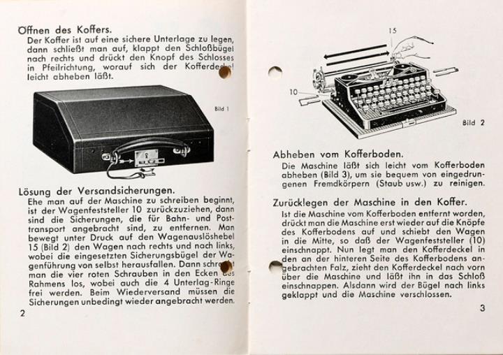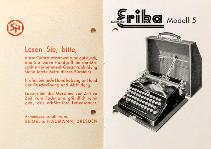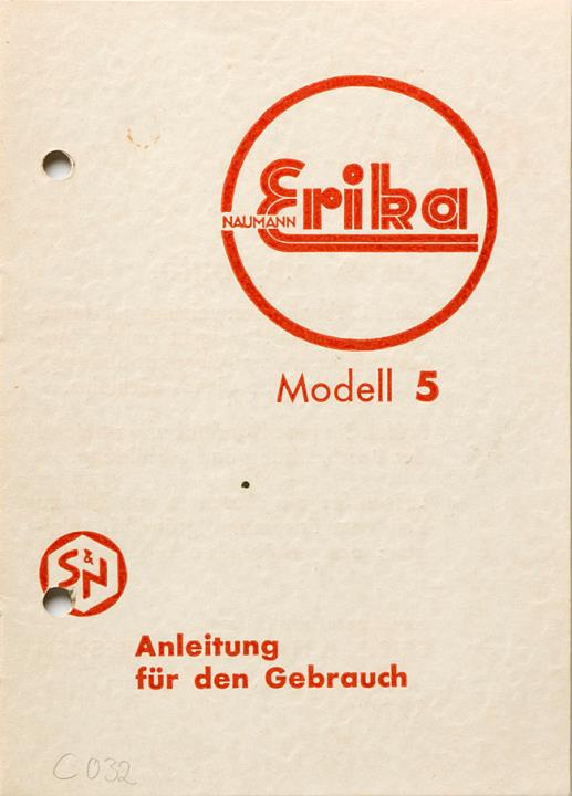 Bedienungsanleitung für Kleinschreibmaschine Erika 5 Nr. Sv 5407 g pa TE