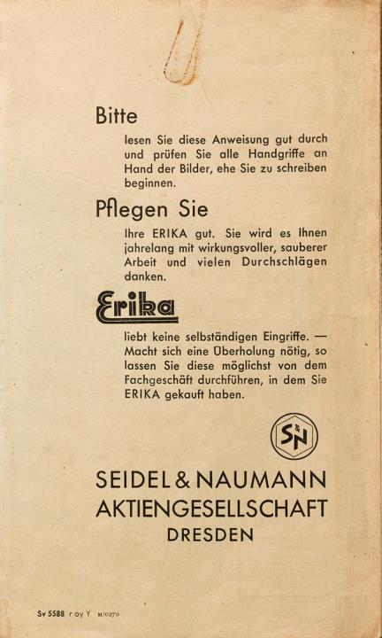 Bedienungsanleitung für Kleinschreibmaschine Erika 5 Nr. Sv 5588 g oy YG