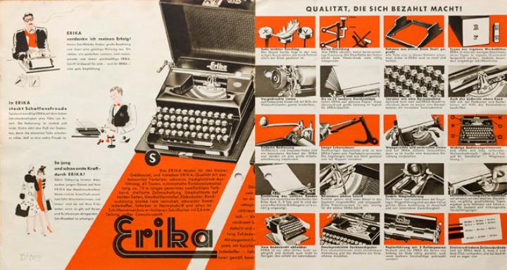 Faltprospekt für Schreibmaschine Erika Nr. S. 7392a. Fot. Binder