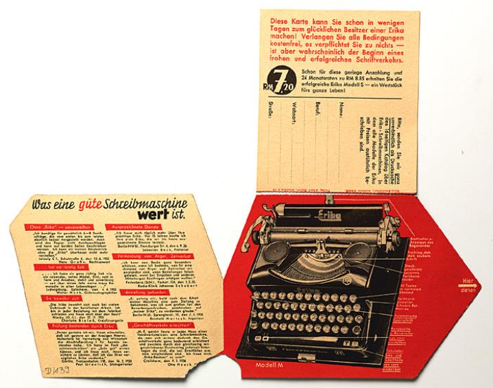 Prospekt für Schreibmaschine Erika Eine Erika zur Ansicht, das wird Sie am besten überzeugen! mit Katalogbestellschein