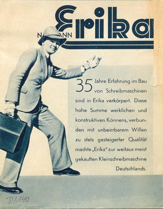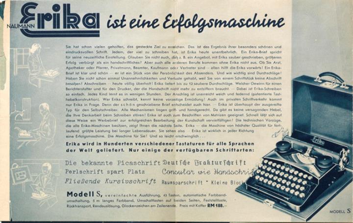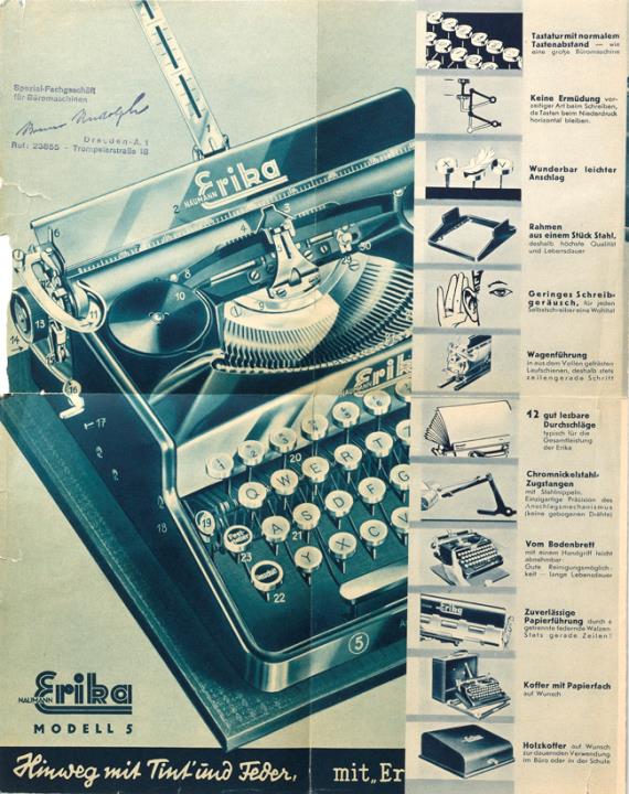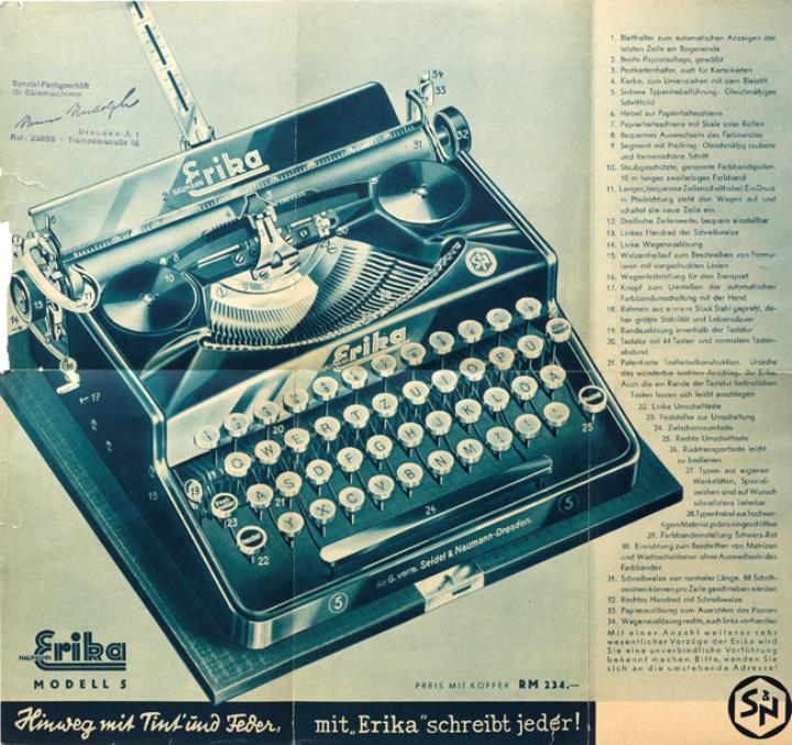 Faltprospekt für Schreibmaschine Erika 35 Jahre Erfahrung (...) Nr. S 7128a. po. PEX.