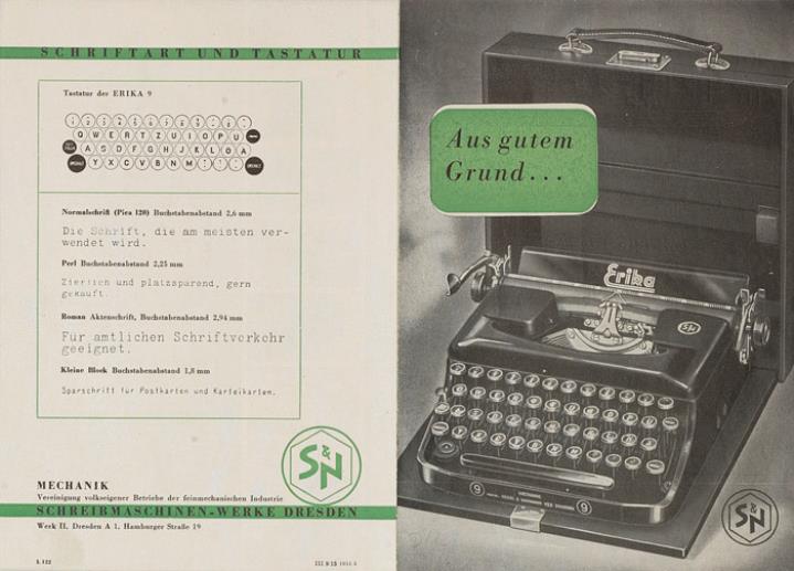 Faltprospekt für Schreibmaschine Erika 9 Nr. III 9/15 1051 3