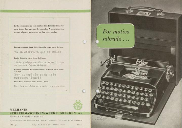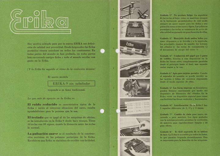 Faltprospekt in spanischer Sprache für Schreibmaschine Erika 9 Nr. III 9/15