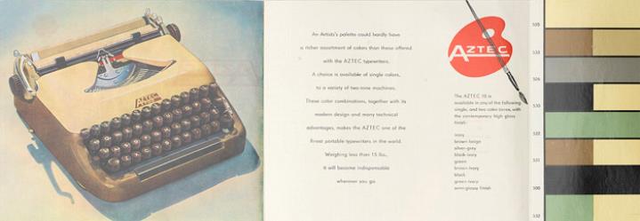 Faltprospekt in englischer Sprache für Schreibmaschine Aztec (Erika) Nr. III/9/139