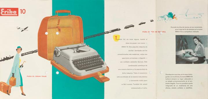 Faltprospekt in spanischer Sprache für Schreibmaschine Erika 10 Nr. V4/59-10 spaNr.